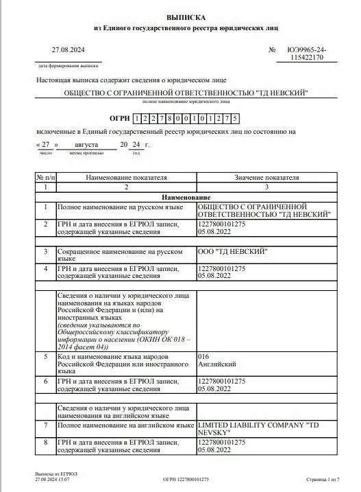 ООО «ТД Невский» реквизиты