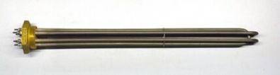 На оболочке ТЭНа отсутствует напряжение, поэтому их можно эксплуатировать при непосредственном контакте с нагреваемой средой. Наиболее удобные в эксплуатации - это блок-ТЭНы. Они состоят из 3х ТЭНов, впаянных в общую латунную гайку. Такое крепление значительно надежнее и удобнее фланцевого соединения. Для нагрева теплоносителя в электрокотлах блок-ТЭНов может быть несколько. Мощность водонагревателя при этом является суммарной мощностью всех элементов. Внутри бака водонагревателя размещаются один или несколько ТЭНов.